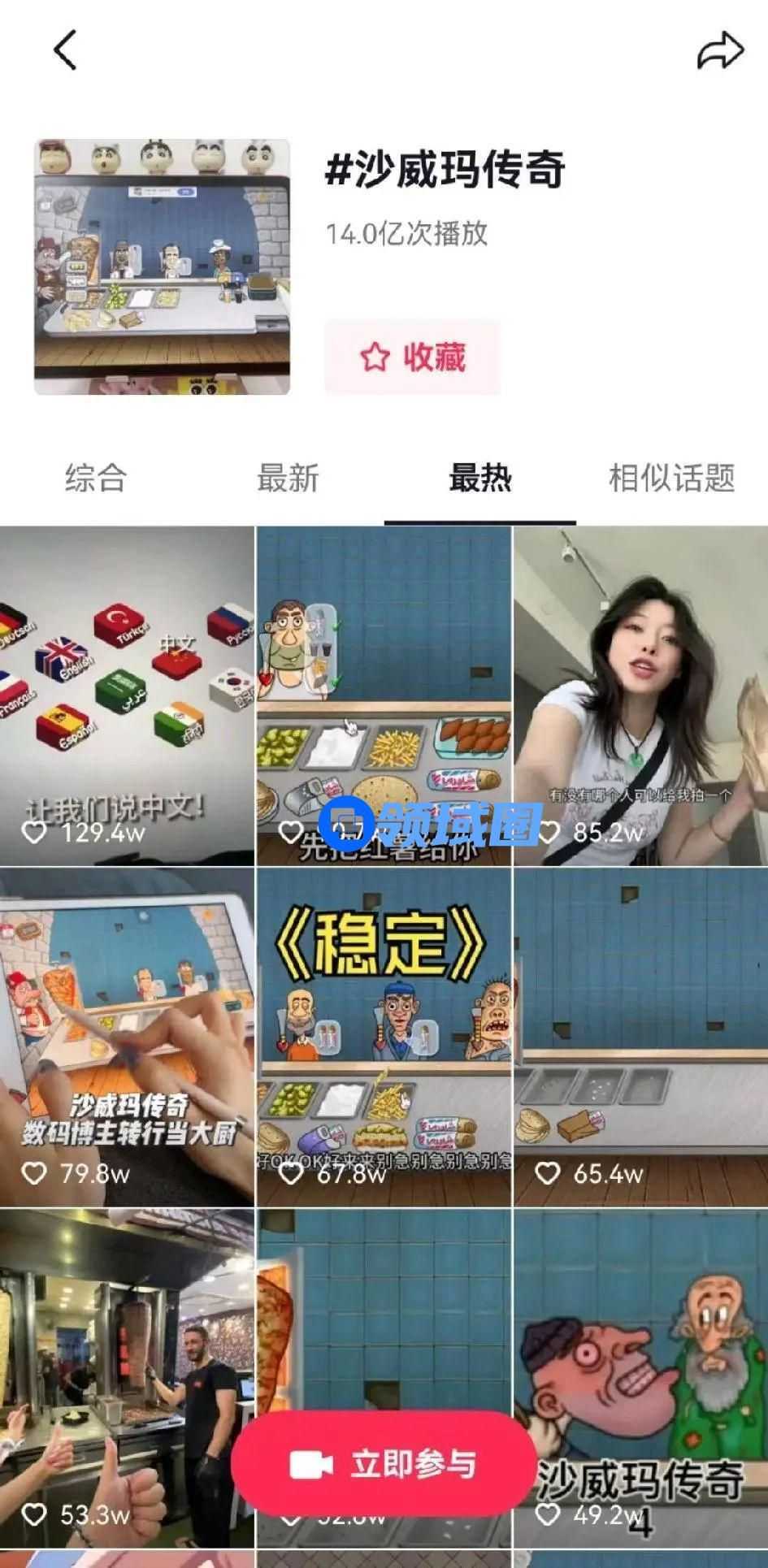 至今,该游戏话题在抖音站内播放已经超过14亿次,B站涌现出了大量播放量超百万的爆款视频,直播间更是随处可见蹩脚的“沙威玛”口音……在几乎全民讨论、全民参与的氛围之下,《沙威玛传奇》终于火爆出圈。