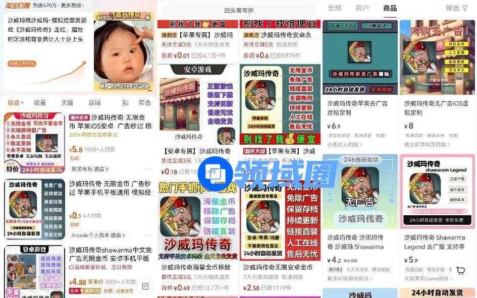 游戏下架之后成功大爆,那么玩不到游戏的玩家怎么办呢?某些玩家干脆直接使用“钞能力”购买游戏安装包。如今某宝、某多多、某红书、某鱼均出现了大量《沙威玛传奇》安装包商品,其中个别最为火爆的产品销量已经超过了10万。