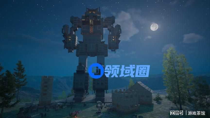 这是《帝国神话》玩家利用木制建筑搭建的机甲,具体型号不得而知,但气势足够,虽说是冷兵器战争沙盒,依然通过建造感受到了机甲战争的氛围。