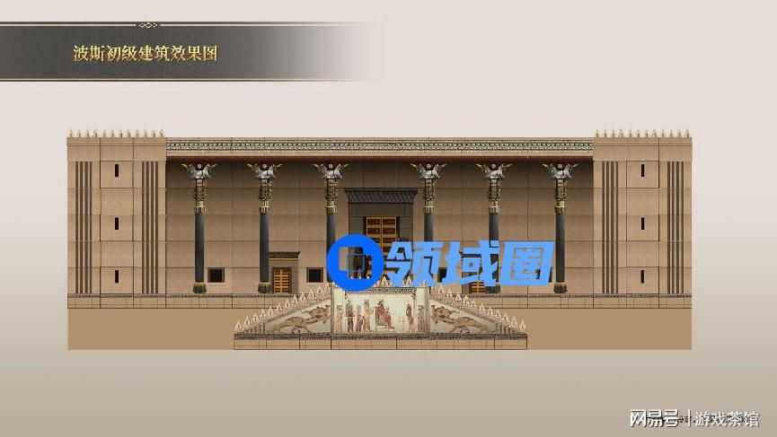 在《帝国神话》的波斯文明DLC中,开发团队将进一步融合波斯波利斯的设计特色,包括不同规格的柱体结构和梯形建筑平台的拓展应用,甚至在一些浮雕设计上也注重细节,如象征力量与威严的牛和狮子造型,以及描绘大流士一世和其他国王、使者和士兵的形象,这些浮雕内容象征着政治力量和外交关系。