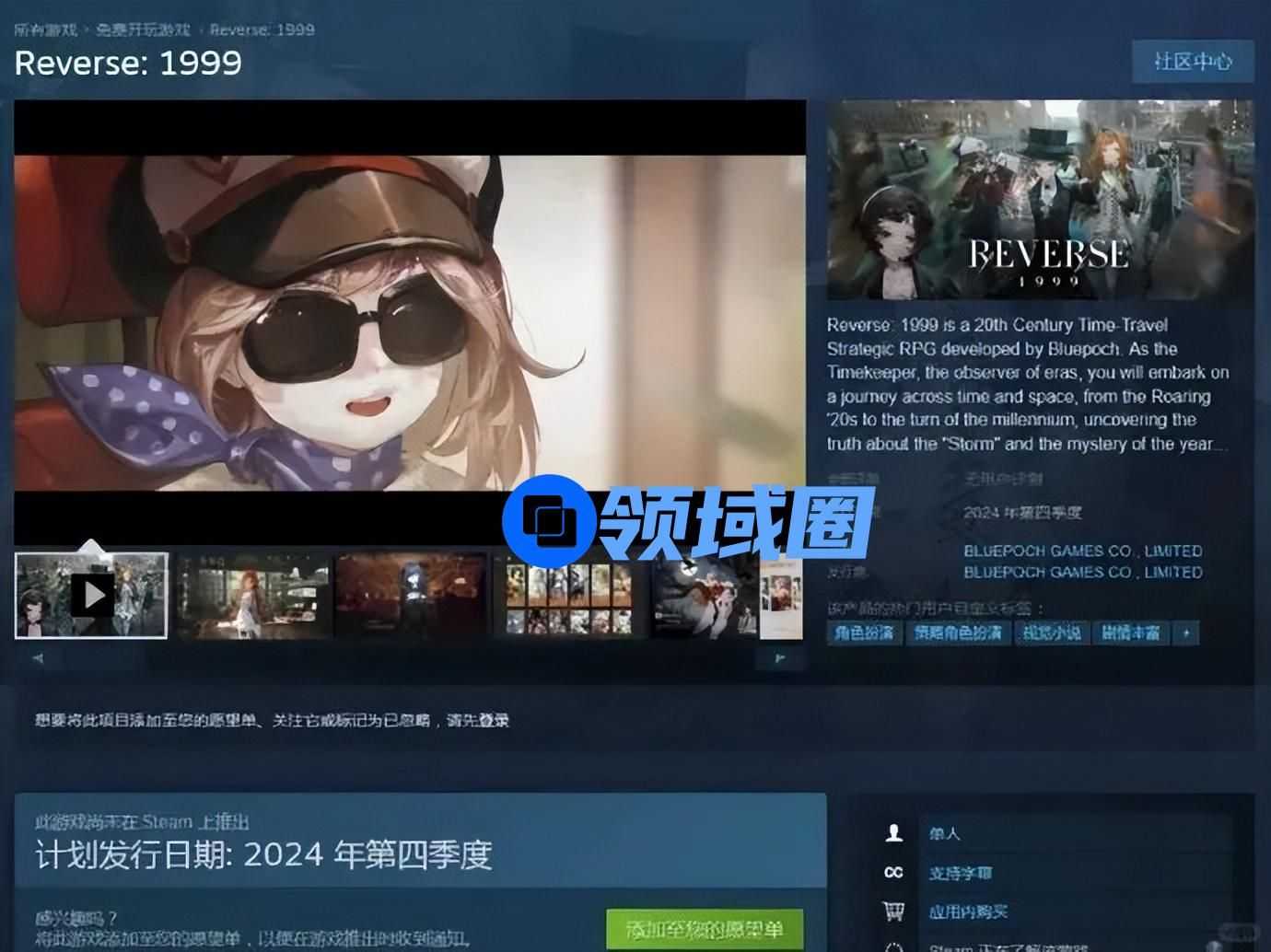 目前,将上线Steam的《重返未来:1999》以其英文名《Reverse: 1999》命名,面向部分国际市场。