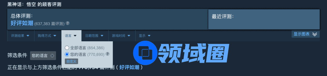 据相关人士透露,小黑盒大概覆盖Steam国区一半以上的高活跃用户,以此推算,《黑神话》Steam国区的用户在1100万左右;同时,《黑神话》Steam商店评论中,简体中文评论占比为90.2%,考虑到国区玩家参与度偏高的影响,预估国区玩家占比75~80%,可以反推Steam全球的用户应该在1500万左右。