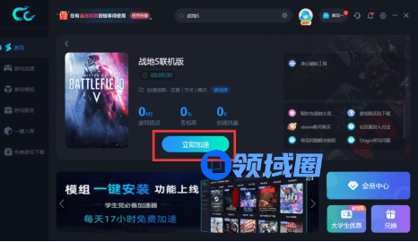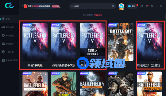 端游加速教程:打开CC加速器PC电脑版---搜索“战地5”---选择你想要的版本---点击【立即加速】