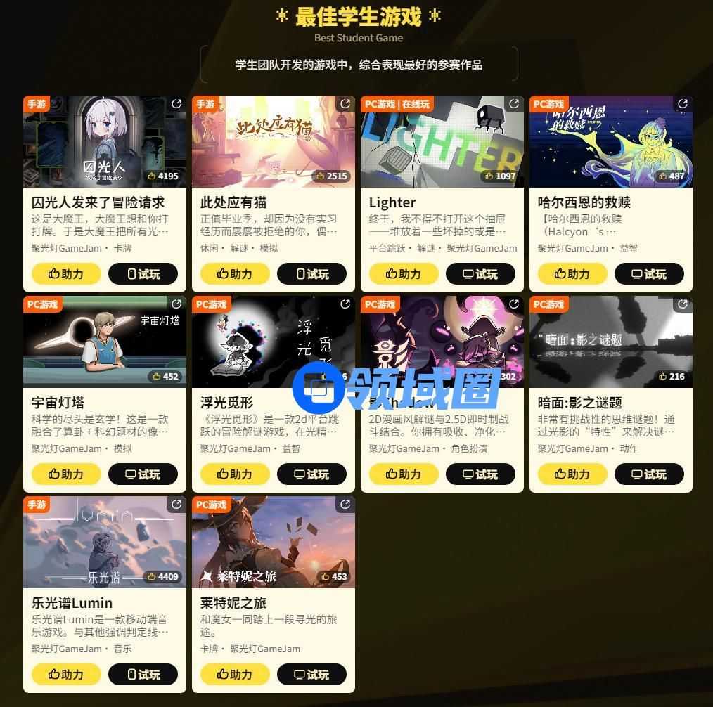 此次参赛游戏总计被试玩次数为127.8万次,各游戏浏览数达到800多万,累计产生了1.2万的评价数,开发过程中还产生了5287篇日志。目前已确定了最佳游戏、最佳试听、最佳主题叙事、最佳创意、最佳SCE、最佳学生游戏等专业奖项的入围名单,后续各大奖项的得主也将从中诞生。
