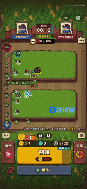 从游戏内容来看,《点点小将》基本承袭了《Lucky Defense》的核心玩法,并在此基础上,加入了旗下“咸鱼IP”的包装。进入游戏后,两个玩家匹配进行合作战斗,随机召唤英雄上场,三个同类英雄可进行合成,三个不同的英雄还可以在符合对应公式的情况下,召唤出神话级英雄。最终,当场上怪物数量超过一定规模,或者boss在场上的时间超过一定期限,则游戏结束。