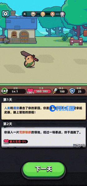 《Capybara Go!》是一款文字冒险+肉鸽元素的产品,主线以关卡形式呈现,玩家将通过一天又一天的方式开启冒险,每一天角色都会遇到各种随机事件,比如武器破损、突然感染病毒、遇到可供休息的灯塔等等,这些事件会直接影响攻击、防御、生命、经验值等角色属性。玩家可根据自身偏好,在系统随机提供的技能选项中,进行自由选择和搭配,形成不同技能流派,来对抗冒险途中的敌人。