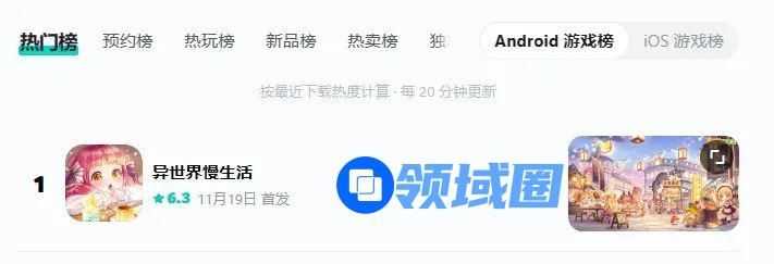 今日,《异世界慢生活》国服上线,也延续了海外服的关注度,上线后,登上App Store 排行榜以及Tap Tap热门榜第一。Tap Tap 玩家为游戏打出了6.3分。