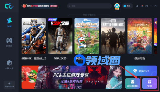 浏览器搜索“CC加速器官网”下载安装CC加速器PC电脑版,打开后右下角有兑换专区,输入兑换码CCJSQ999,即可兑换成功。兑换成功后会弹窗提示