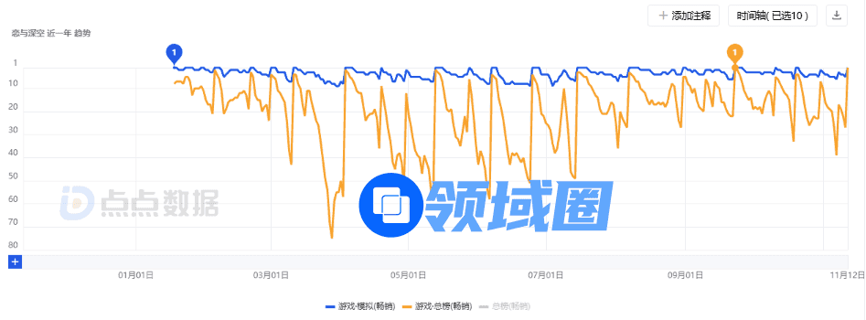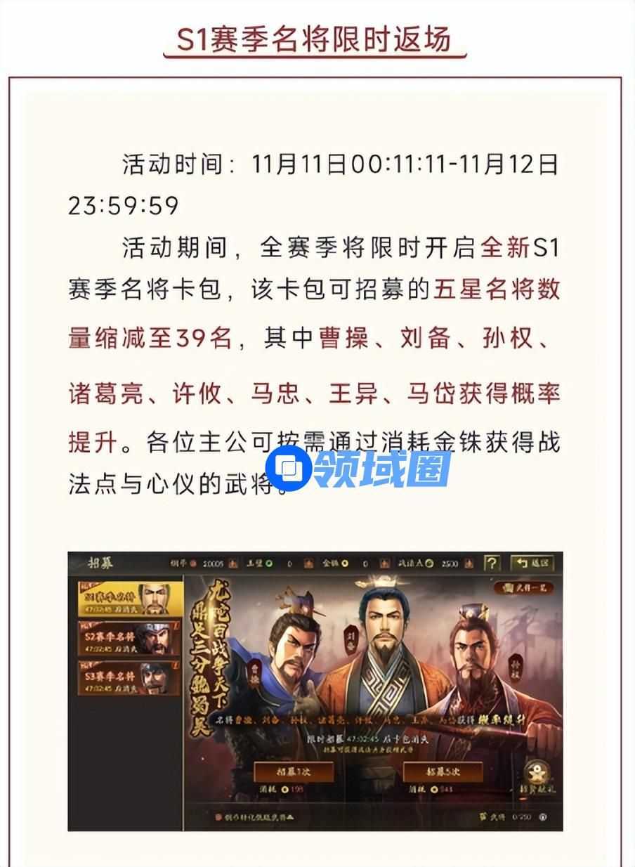 《三国志·战略版》则在今年首次冲进畅销榜第1。昨日,该款游戏推出双十一限时活动,让S1、S2和S3赛季的名将限时返场。这波活动内容让“三战”提升14名,在11月10日来到畅销榜第1。