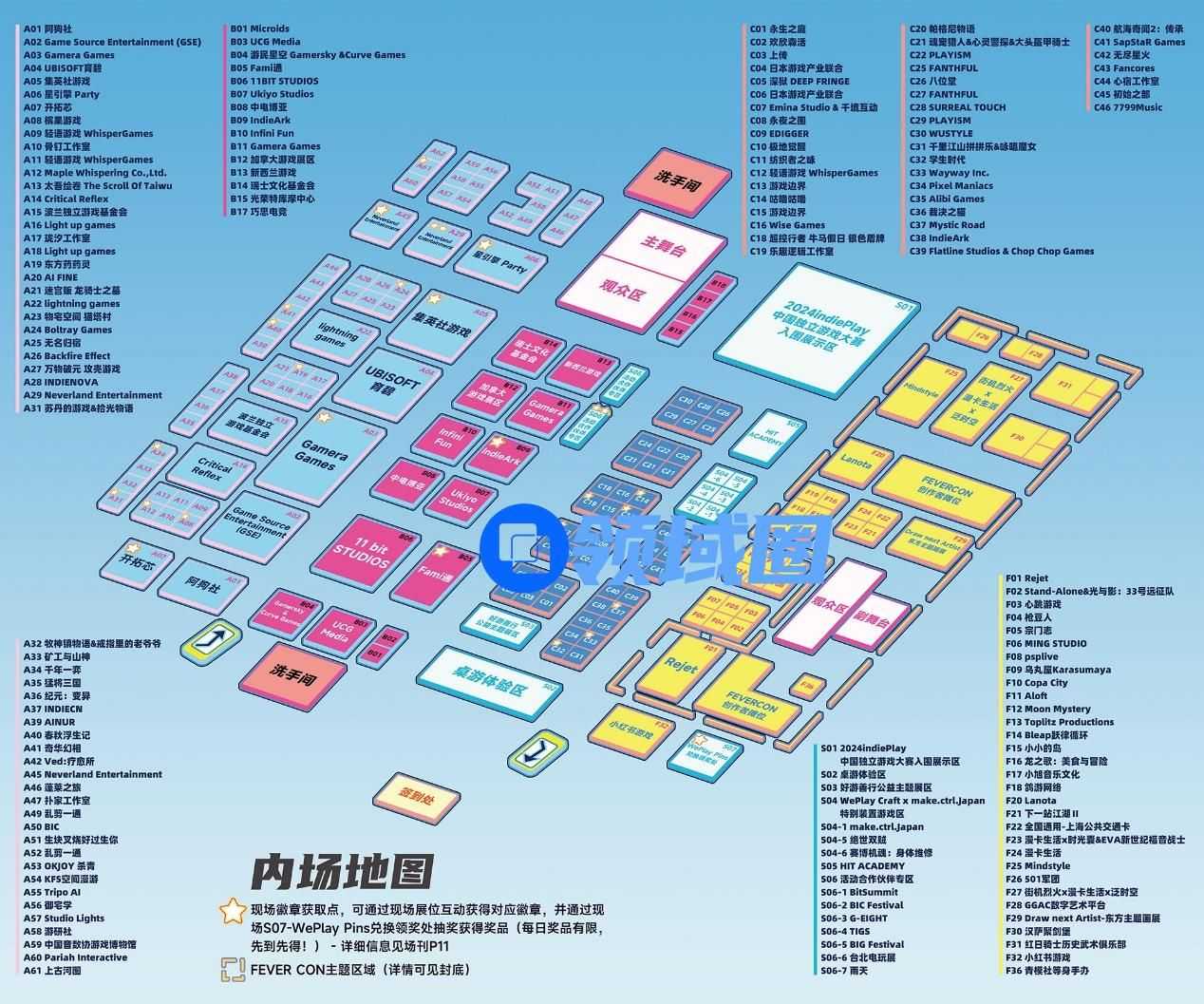 上图右边黄色框出的区域均为FEVER CON 1st 的区域!FEVER CON 1st 以2024 WePlay展中展的形式,音游、街机、东方主题画廊、创作者摊位等次元文化内容!同时还有Rejet、Mindstyle带来展会限定周边贩售!