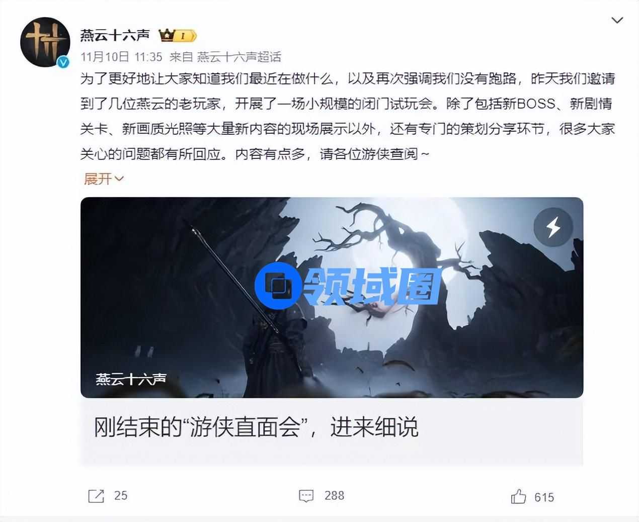 近日,《燕云十六声》官方突然发布微博公告,表示并开发团队并没有跑路,正在为年内公测做最后的冲刺,争取实现大步快跑的开发进度。目前,官方已经完成了95%以上的公测版本内容开发和优化,并进入了最后的验收环节。
