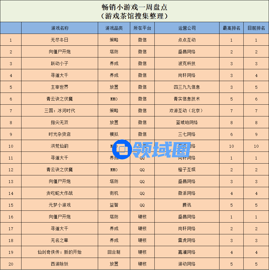 热玩小游戏:《聪明开局》登顶,《小小生存队》冲上TOP3
