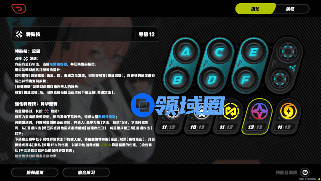 比如1.3新角色月城柳,期小技能“流转”就附带着招架特性,类似于《怪物猎人》中太刀的见切,在攻击来临前点按,便可招架敌人攻击,并为自己附加BUFF,穿插在某段平A后,还可以直接改变连段顺序。