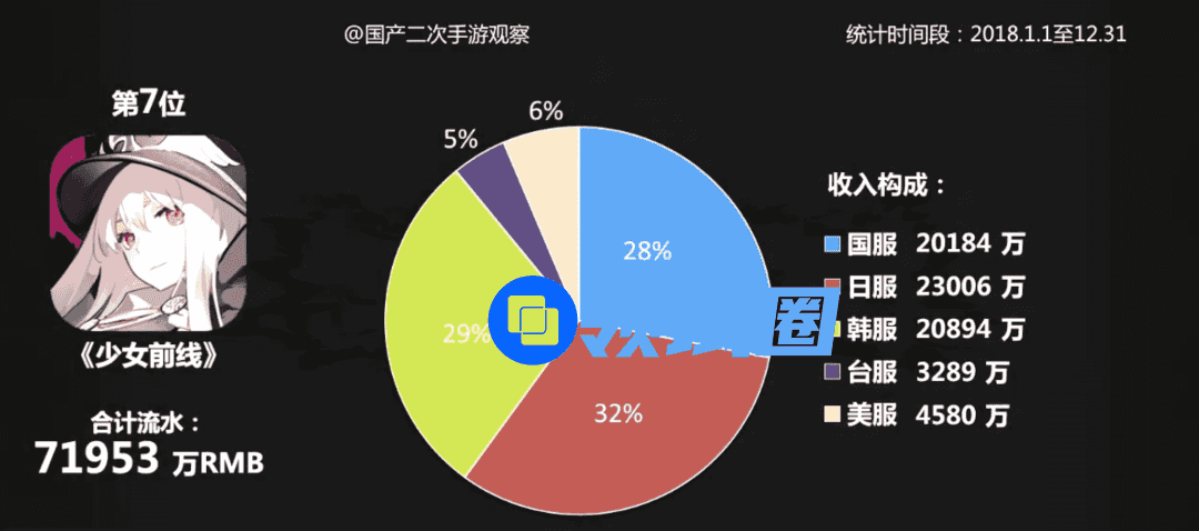 《少女前线》海外服上线时,才算正式发力。据一些第三方平台统计,游戏2018年和2019年的全球合计流水分别为7.1亿元和5.5亿元,国服流水均不超过总流水的三分之一。《少女前线》也是第一款登顶韩国IOS畅销榜第一名的国产手游。