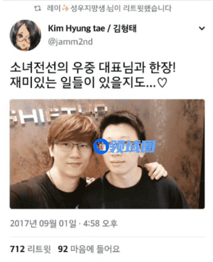 《胜利女神:妮姬》制作人金亨泰和《少女前线》制作人羽中合影