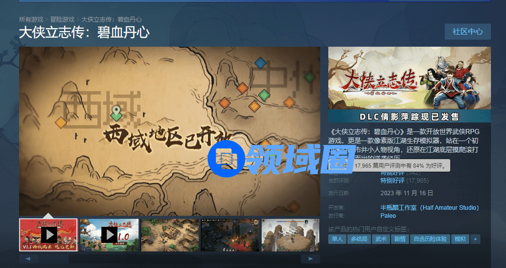 虽然《大侠立志传》早在去年就上线了Steam。上个月,醋大工作室才正式从上一家公司完整剥离到他的新公司。他客观评价自己曾经的作品:“《金2》《金3》很大程度因为金庸系列IP搭上了Flash传播的便利性,并不能说明我游戏设计本身特别出彩。”何况,《大侠立志传》最终的销量和评价也远没有达到让他浮躁的境况。