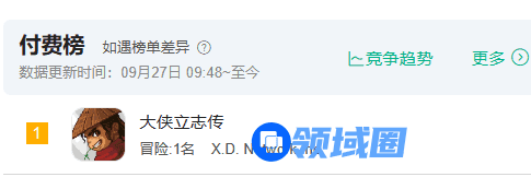 今年9月20日,《大侠立志传》手游发售,热度依旧,持续霸榜iOS付费榜和Tap Tap热卖榜第一,在上线一个月后,至今依旧维持在榜单第二名。