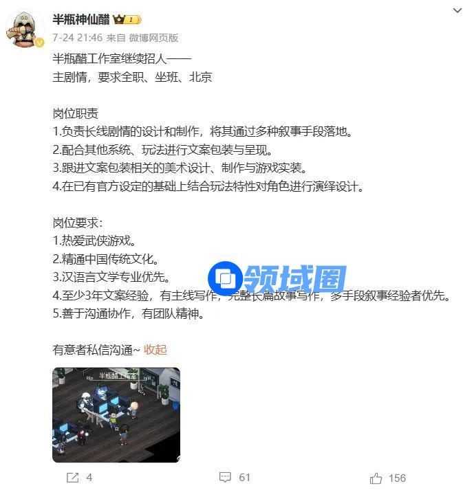 这也是《大侠立志传》剧情策划难找的原因。作为一款开放世界武侠游戏,网状叙事的设置决定了不仅需要作者熟悉传统文化和武侠小说,还要精通网状类任务设计手法。这些年醋大面试了不下几十名的剧情策划,先后入职七人,目前也仅留下了两名剧情策划,时至今日,还是能看到醋大在为招聘到理想的剧情策划而努力。