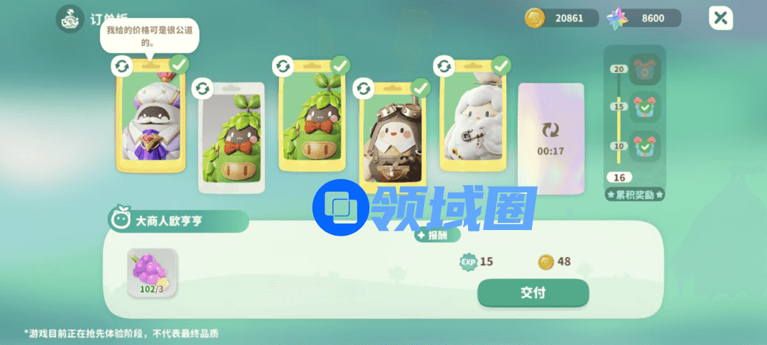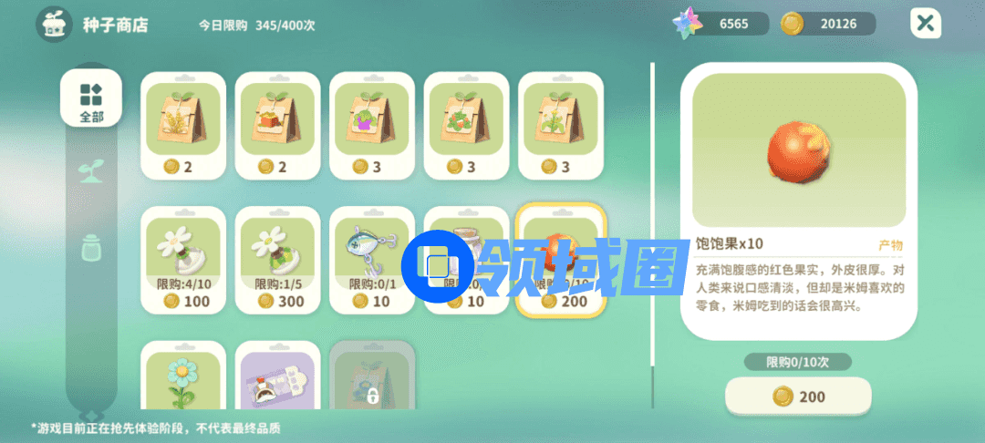 在前期,为完成订单提升等级,玩家往往埋头忙于种子的播撒、收成与完成订单。种子商店具有购买上限400次,这或许有厂商把控玩家进度的考量,另一方面也降低玩家肝度。至少从个人体验来看,在测试期间,我只要至少保证每日购买足量种子,便能避免资源获取落后的“失去感”,并保证每日目标的“完成感”。