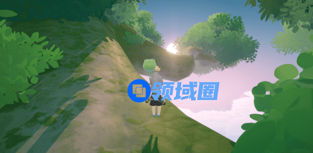 这种体验以“飞”为关键词。探索大世界的方式除了传送塔、飞行屋和热气球,在巨树之岛,玩家还可以长按跳跃,打着透明阳伞穿过金黄的树叶缝隙,伴随自己在地面上的投影飘至目的地。同时玩家也能直接驾驶“米姆”飞机,在空中留下白色尾迹云的弧线,径直上升来到天空之树的顶端。