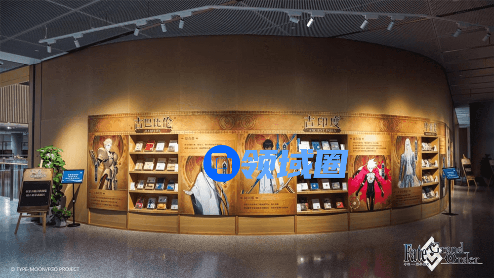 7F则是本次特别联动的主展区,结合了《FGO》内托勒密及其亚历山大图书馆场景搭建的特色主题展区让人眼前一亮,长廊的一面用《FGO》内的角色形象图文并茂的描绘了古希腊著名天文学家、地理学家托勒密的璀璨人生,另一面来自《FGO》中的8位从者则携手展现「古巴比伦」、「古印度」、「中南美」和「古希腊」的文明风采。