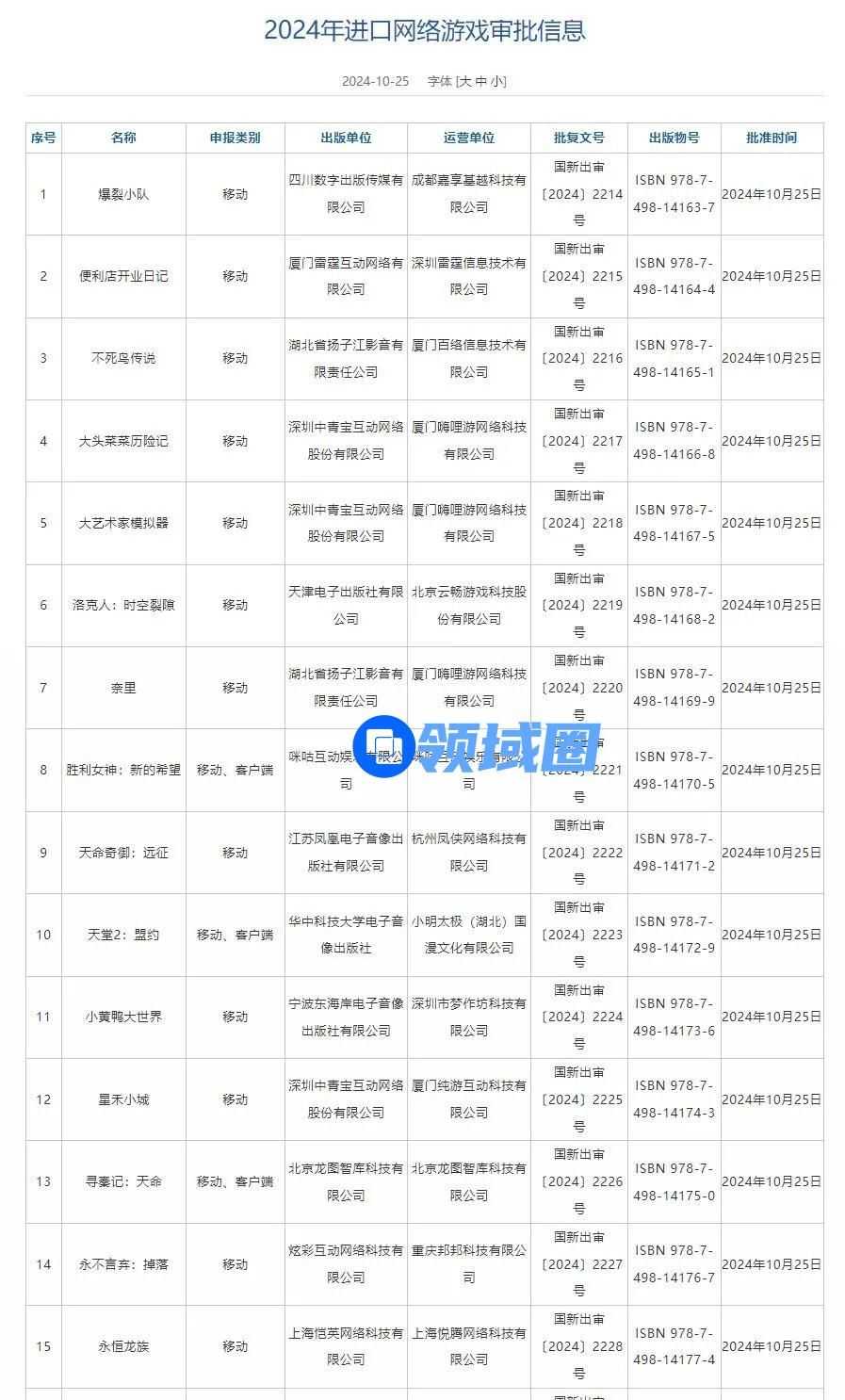 此外,由Supercell开发的《爆裂小队》也顺利过审。这是一款多人在线策略对战游戏,玩家需要组建并指挥一支由不同角色组成的小队,在多变的地图和随机事件中与其他玩家进行竞技,通过策略和团队协作来争夺胜利。游戏以其独特的派对动作玩法和丰富的角色系统,为玩家提供了一个充满乐趣和挑战的游戏体验。