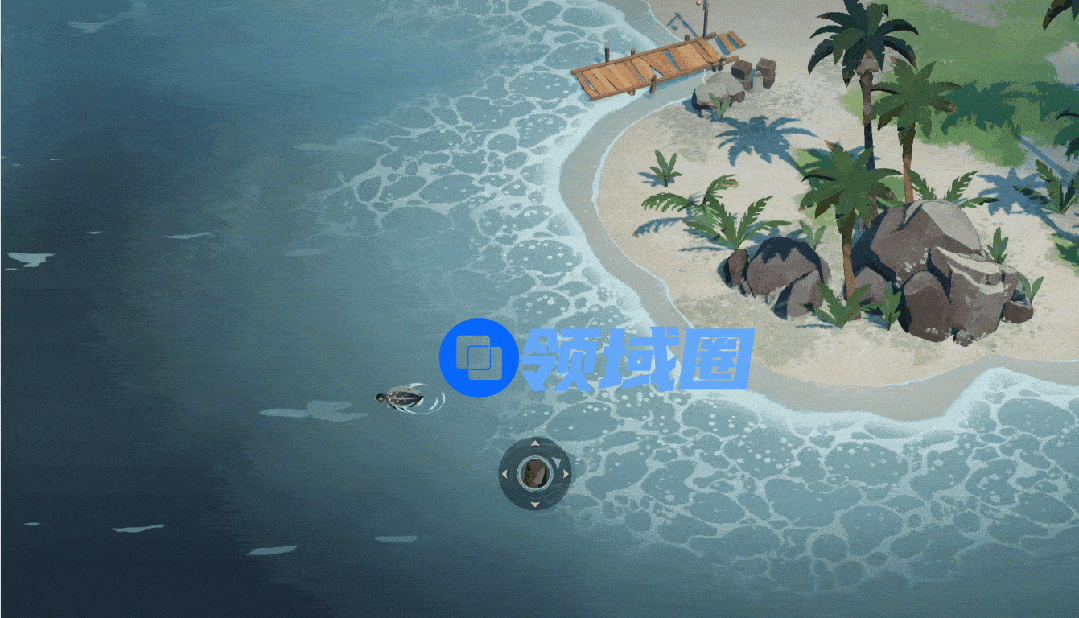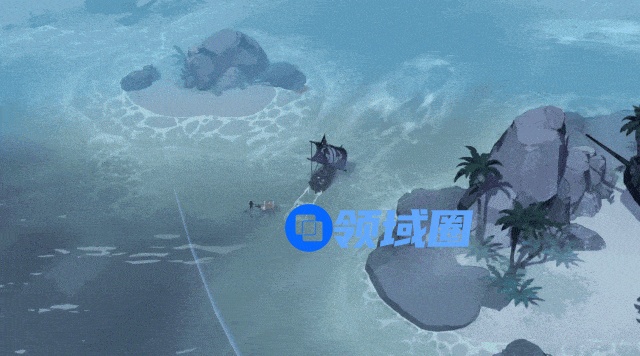另外,在美术结果上能适配伊索米亚的“画风”也是一个难点。基于现实物理原理去模拟海洋的反射、次表面散射等细节,但是风格化其色调,得到的结果依然显得有些过于“写实”。在反复商讨迭代之后,我们放弃了很多物理算法,将海面概括成色块,才得到了最终这个效果。除此之外,海洋的玩法和美术设计很多时候无法单纯通过美术资产实现,大多需要搭载在海水的着色器上,如荧光海滩夜间的蓝眼泪,礁石、暗礁、旋涡洋流等等。