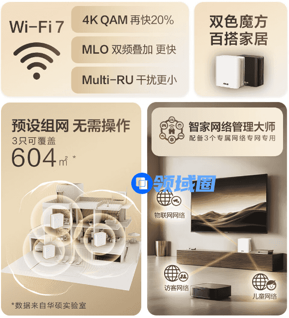 当然,华硕路由器的优势远不止于此。新一代灵耀魔方还配备了双2.5G口,无论是内网还是外网,都能支持2500M高速传输。而高通四核1.5GHz的强劲CPU,更是为高速稳定的家庭网络提供了坚实的保障。在外观设计上,灵耀魔方也不遑多让。黑白双色的精巧机身,内置天线设计,不仅科技感十足,还能完美融入各种家居风格,为家居增添一抹亮色。