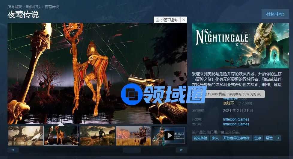 目前该游戏在Steam平台总体好评率只有65%,为褒贬不一,大部分玩家都认为游戏的画面,角色形象、动作流畅性以及房屋建造出现了一些硬伤,不过在9月的更新之后,该游戏的口碑迎来一波反弹,近期评价已经回到了80%的特别好评。