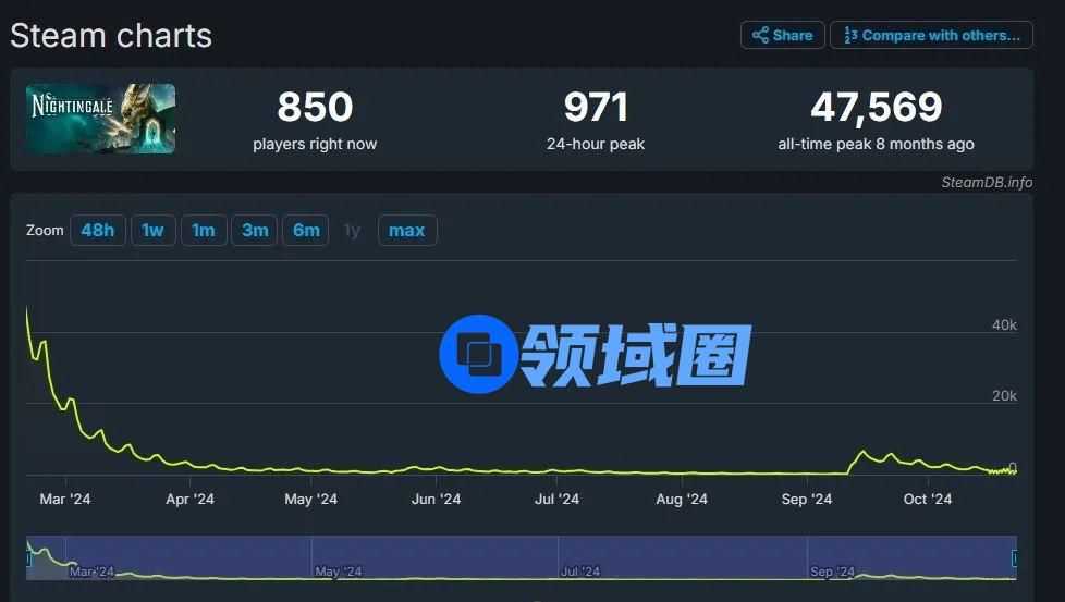 《夜莺传说》最初计划在2022年底就开放EA版本,不过先后遭遇了多次跳票,最终于2024年2月21日正式发售。游戏最高在线人数一度达到了4万7千人,然而仅仅1月多月后,最高在线人数就滑落到2千人左右。