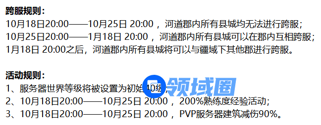 10月18日,《帝国神话》国服开放了新郡-河道郡,考虑到新旧郡县的实力差距,官方特别为新郡定制了限时经验、熟练度加成规则,并提供了保护机制。综合来看该新服非常适合有意向进军八王之乱服务器的新工会进驻,为下周即将到来的八王版本做跳板,提前进行战略物资筹备并提升角色实力。