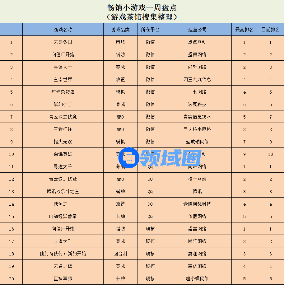 休闲新游周报每周统计微信小游戏、QQ小游戏、抖音小游戏、硬核小游戏以及App Store和Google Play上的新游爆款,并按照分类制作表格,将游戏排名情况等信息公布,希望给到行业同侪帮助。