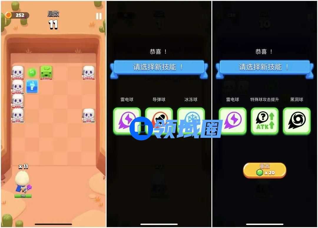 该游戏玩法结合了敲砖块和RPG养成元素,玩家在游戏中只需要滑动屏幕,即可轻松控制角色发射子弹的路线,攻击并消灭不断前进的敌人。在游戏过程中,玩家可以选择学习心得攻击技能,来提升子弹的属性,进一步提升攻击效率。
