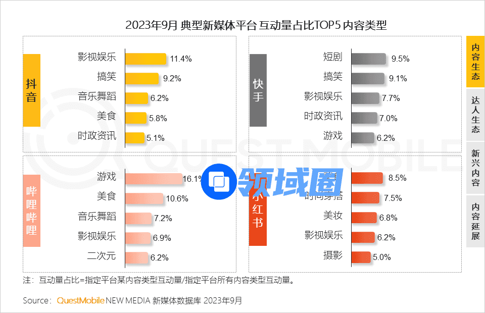 据QuestMobile《2023年新媒体生态洞察报告》的互动量数据来看,游戏,已成为了 B站用户最为关注的领域。