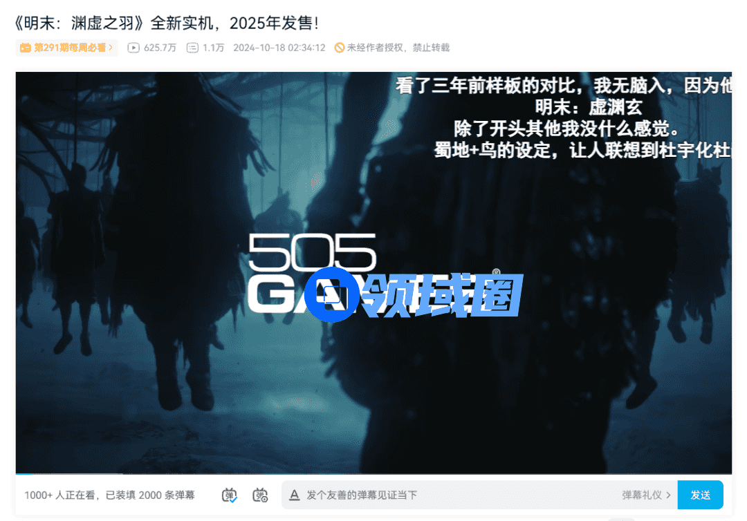 这类例子实在无独有偶,前日,灵泽科技的《明末:渊虚之羽》,实机PV,仅过去两日,就来到了6百万播放量。