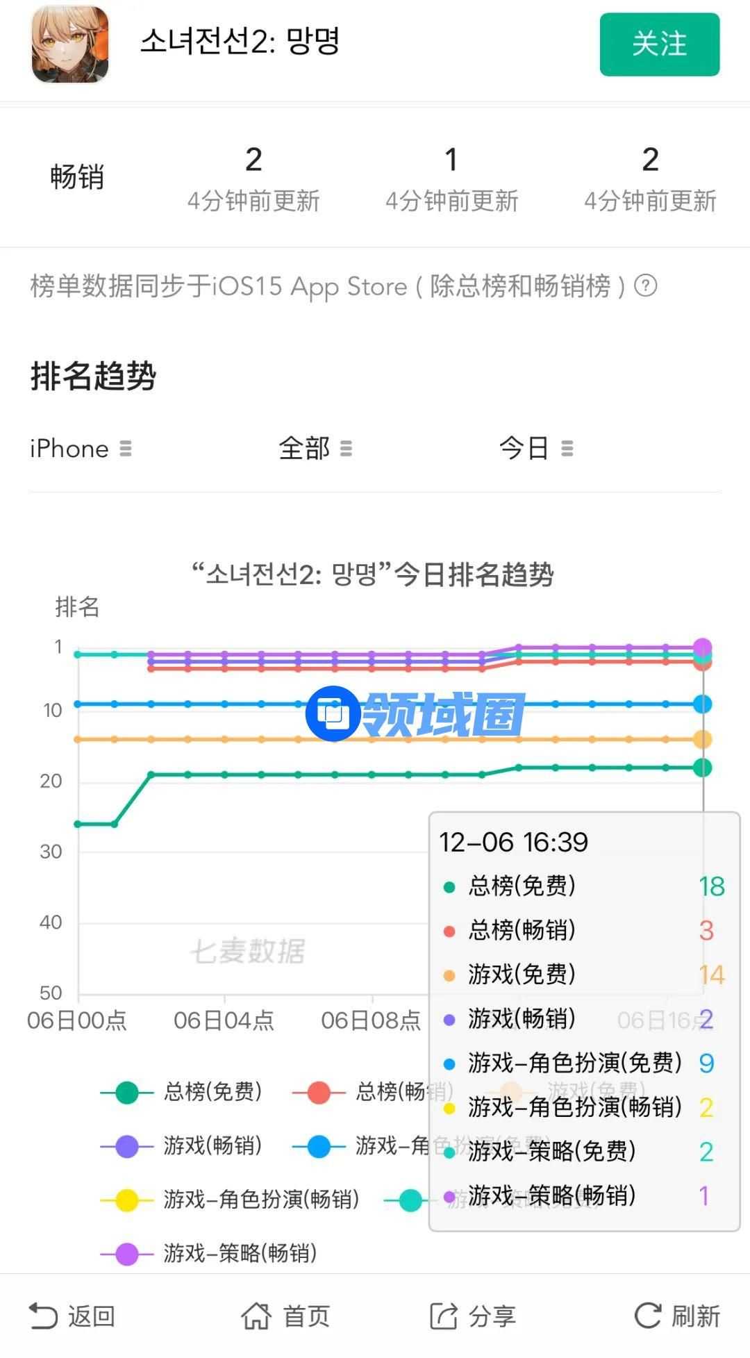 在羽中所述超过了预期的成绩中,韩区成绩最佳,游戏一度跃升至IOS畅销总榜畅销第三名(游戏榜第二名)和免费总榜第一名。