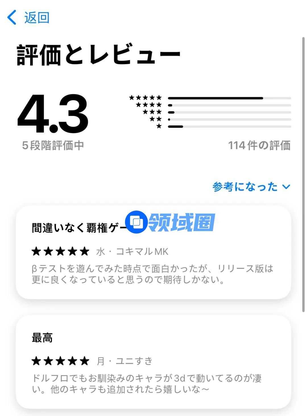 日区和美区则分别保持在畅销榜前20名和前50名,美区Google Play商店也获得了免费榜第二名的成绩。在出海的国内二游当中,这番成绩已能算得上是头部水平。各区商店评价内,也少有见到针对游戏的负面评价(基本都是“游戏占用内存太大了”)。