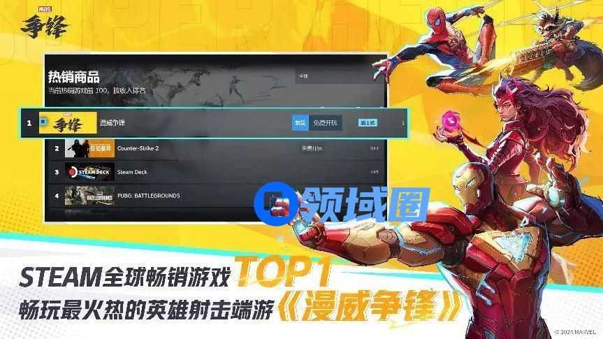 在昨日,第一张底牌已经打出,取得的反响大大超出预期——《漫威争锋》以44w的最高同时在线人数冲上了Steam热玩榜第二,仅次于《CS 2》,热销榜更是问鼎榜首。值得注意的是,这还仅仅是Steam的数据,没有包括使用网易官方渠道下载的国服玩家,如果全部加起来,那其热度或许更为恐怖。