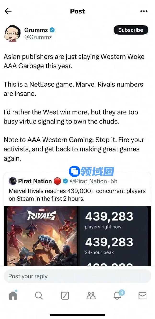 横扫或许有些夸张,但《漫威争锋》在海外的热度毋庸置疑。与国内相比,国外、尤其是北美用户对于漫威IP的接受度更高。国内玩家大多数是通过漫威电影系列了解IP,在近些年漫威宇宙电影萎靡不振后,漫威的热度锐减,但是国外粉丝却有相当大的比例是“原著粉”。因此,《漫威争锋》并未浅尝辄止,而是深入挖掘了漫威系列作品,发掘出许多只有原著粉才能秒懂的会意点。在上次访谈中,项目组曾经透露,文案组有许多对漫威文化“如数家珍”的大佬,正是在这种对等热爱的驱使下,《漫威争锋》才收获了海外玩家的一致好评。