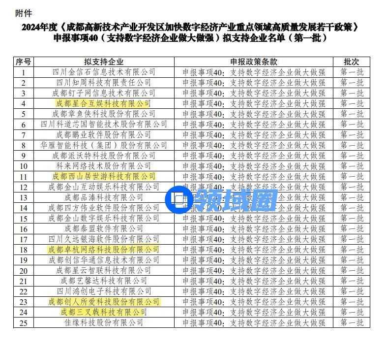 近期,2024年度《成都高新技术产业开发区加快数字经济产业重点领域高质量发展若干政策》申报事项40拟支持名单出炉,西山居、育碧和完美世界等游戏企业均在名单中。