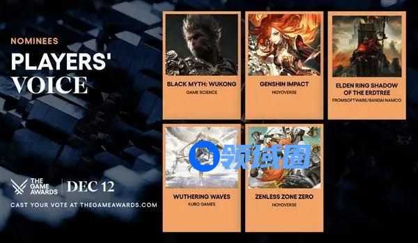 昨日,TGA的玩家之声提名已经出炉,令人惊讶的是,这个往年被各大欧美日韩厂商“占领”的舞台,今年却看见了四个来自中国厂商的熟悉身影——《黑神话:悟空》《鸣潮》《绝区零》和第三次被提名的《原神》。最后一款非中国厂商的游戏也不是什么新秀,而是《艾尔登法环》的DLC。虽然“玩家之声”奖项的含金量算不得太高,但毕竟是TGA的一部分,并且很大程度上反映了玩家们的喜好和市场的方向。