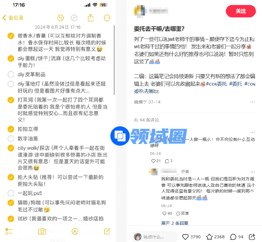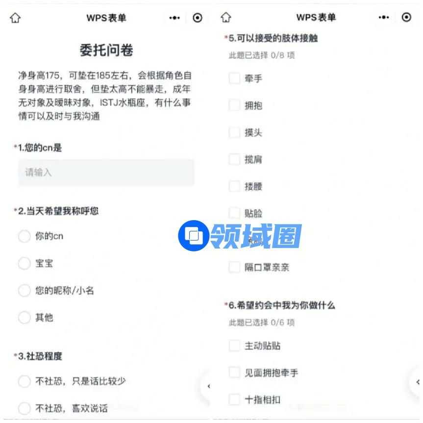 乙游委托问卷。图片来自小红书