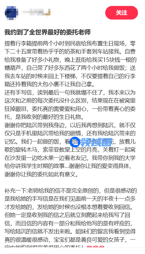 网上分享的温暖的委托故事