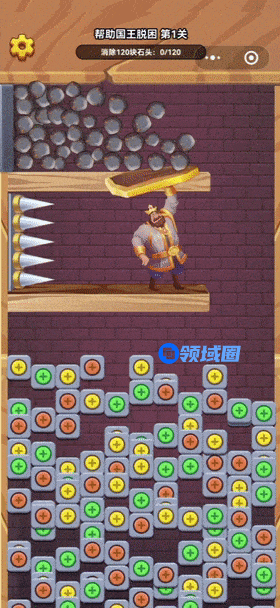 其中《密室出逃》的玩法在买量素材上非常常见,游戏角色处于密室之中,不停掉落的石头会不停把角色往危险的地方推,玩家需要通过移动消除下方的方块,开辟出一条新的道路,将多余的石头排出密室,最终拯救角色。这类能让玩家看得津津有味的素材,做成游戏后往往也能获得不错的效果。