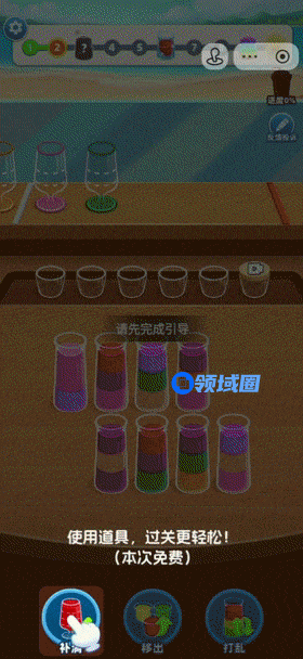 其中《整理你最牛》采用的是持续大火的颜色排序类解谜玩法设计,不过整体呈现方式略有变化,桌面上摆着各种颜色饮品混合在一起的瓶子,玩家需要根据出餐区的订单需求,将对应颜色的饮料倒进对应颜色的杯子中,当一个杯子装满,则完成一个订单。且每完成一次操作,出餐区就会增加一个订单,当订单数量操过出餐区,或者下方的临时杯子全被装满,则闯关结束。游戏中,一个杯子中混合的颜色会一次全部倒出,这大大提高了闯关的难度。