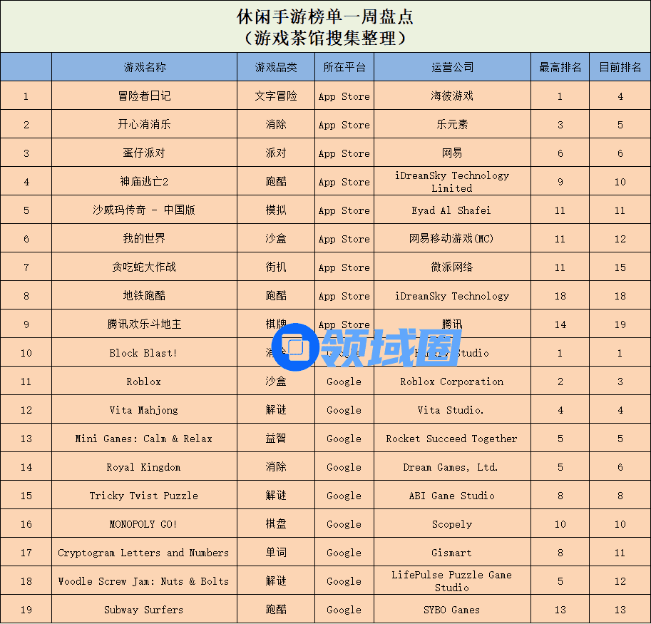 休闲手游:出口转内销,《冒险者日记》稳坐TOP5
