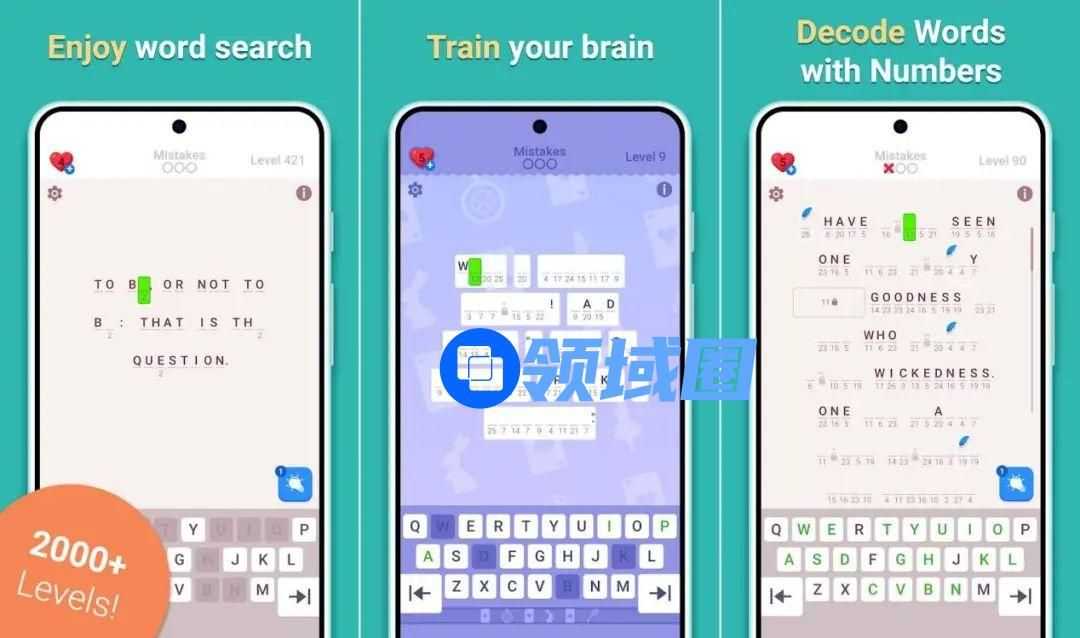 《Cryptogram Letters and Numbers》是一款文字解谜游戏,在每个关卡中,一段文字中会随机出现用数字代替的空白位置,每个数字对应不同字母,玩家需要根据字母组合猜测出不同数字对应的字母,完成解谜即可通过关卡。