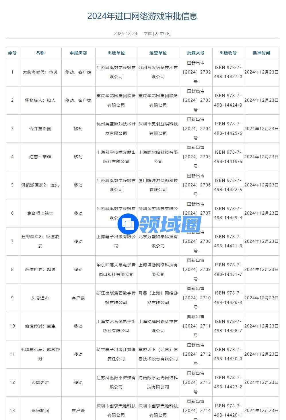 以下是完整过审名单: