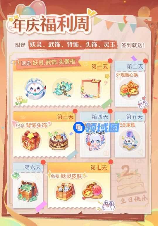 欢庆二周年,豪礼送不停!惊喜福利周来临,登录即可领取海量豪礼!御灵师在活动期间登录签到即可领取周年限定宠、纪念武饰、背饰、头饰、妖灵皮肤,以及灵玉、坊市五折券、绮罗华章、妖灵成长果等惊喜福利!