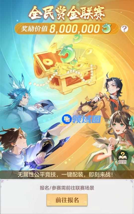 第二届全民赛火热开战!总价值800万灵玉赏金,现金大奖、海量通宝灵玉参赛瓜分。无属性公平联赛,公平使用模板角色,一键配置账号及妖灵。参赛战队共同瓜分现金大奖与海量灵玉,跨服逐鹿群雄!